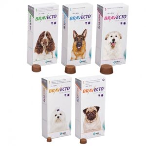Upozornění: nejsme e-shop a veškeré zde uvedené léky prodáváme pouze v ordinaci. Poštou nezasíláme. Děkujeme za pochopení. Bravecto jsou tablety, které okamžitě a účinně fungují proti blechám a klíšťatům po dobu 12 týdnů. Můžou se aplikovat březím i kojícím fenám, koliím a jim příbuzným plemenům. Nespornou výhodou je, že se nesnižuje účinnost koupáním. Vy i Vaše děti se můžou se psem mazlit bez obav, že budete vystaveni kůži psa ošetřené pipetou, či obojkem. Tabletu psovi podáte jako pamlsek. Bravecto by se nemělo používat u psů mladších 8 týdnů a s hmotností nižší než 2kg. K dispozici je i Bravecto Spot-On („kapka za krk“) s naprosto stejným efektem i délkou účinku. Přípravek není určen pro kočky! Aktuální ceny: Bravecto XS (2-4,5kg) – 930,- Bravecto S (4,5-10kg) – 1000,- Bravecto M (10-20kg) – 1030,- Bravecto L (20-40kg) – 1150,- Bravecto XL (40-56kg) – 1280,-